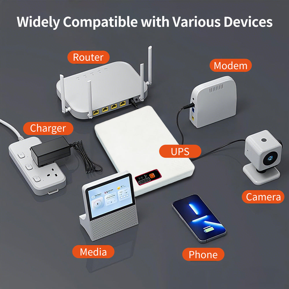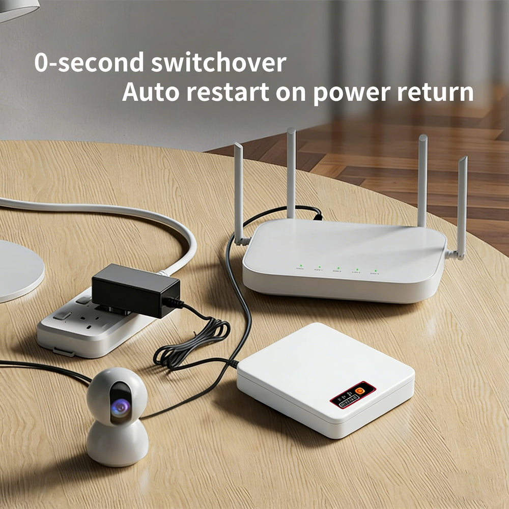 Engineered for safety and reliability, the Mini UPS automatically detects power loss or low voltage and instantly switches to battery mode to prevent downtime. It features built-in surge protection, overcharge protection, temperature control, short-circuit detection, and low-voltage protection, ensuring both device and user safety. Clear LED indicators display battery level, POE voltage status, and power on/off state, allowing easy monitoring at a glance. Compact and portable, the Mini UPS is ideal for home and office use, keeping your internet and critical equipment running smoothly for hours when you need it most.
